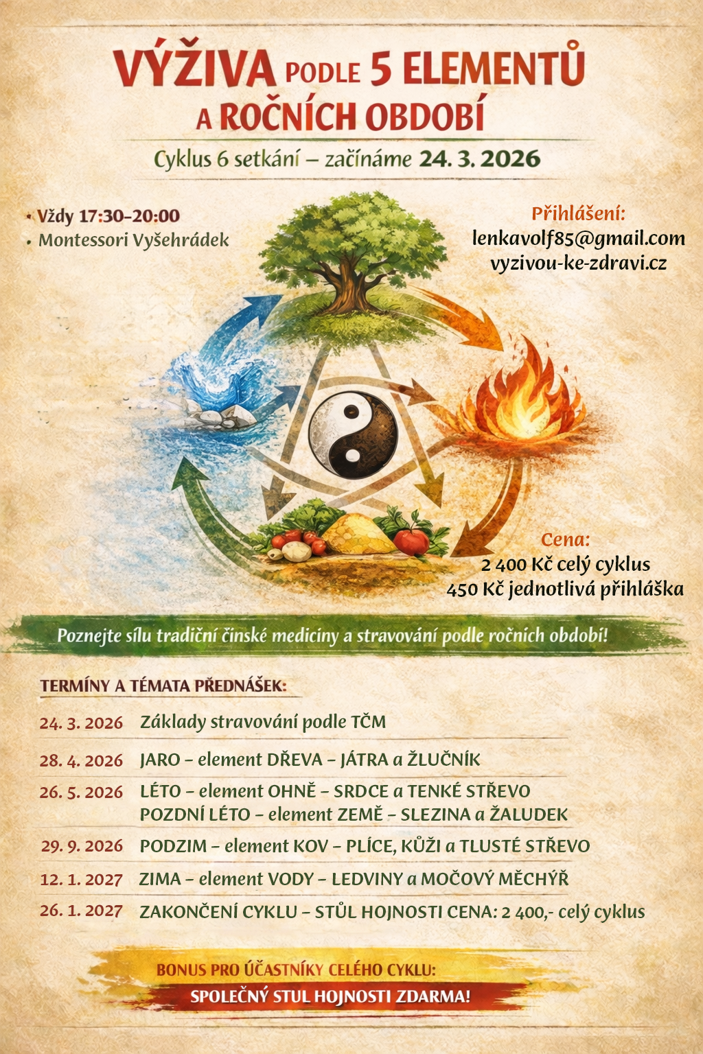 Srdečně vás zvu na jedinečný cyklus přednášek věnovaný principům cyklu 5 elementů vycházejících z tradiční čínské medicíny.